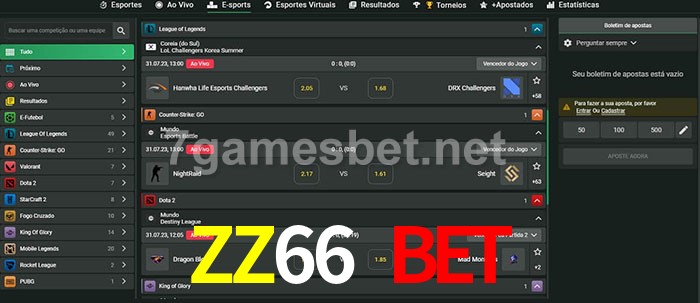 O ZZ66 Bet oferece uma grande seleção de opções de apostas em e-sports com probabilidades competitivas
